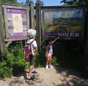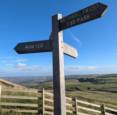 Mam Tor, which translates to "Mother Hill", is a 517m (1,696ft) peak overlooking Castleton in Derbyshire. Located just under 30 miles from Manchester, it's a great place for a day out and a perfect spot for beginner hikers. It's a relatively easy climb, particularly if you begin the approach at the Mam Nick car park - the path is paved all the way to the summit, with steps on the steeper parts of the hill. This makes it easy even for the youngest hikers - our daughter was just under 3 years old on our first visit there, and was able to walk most of the way on her own.